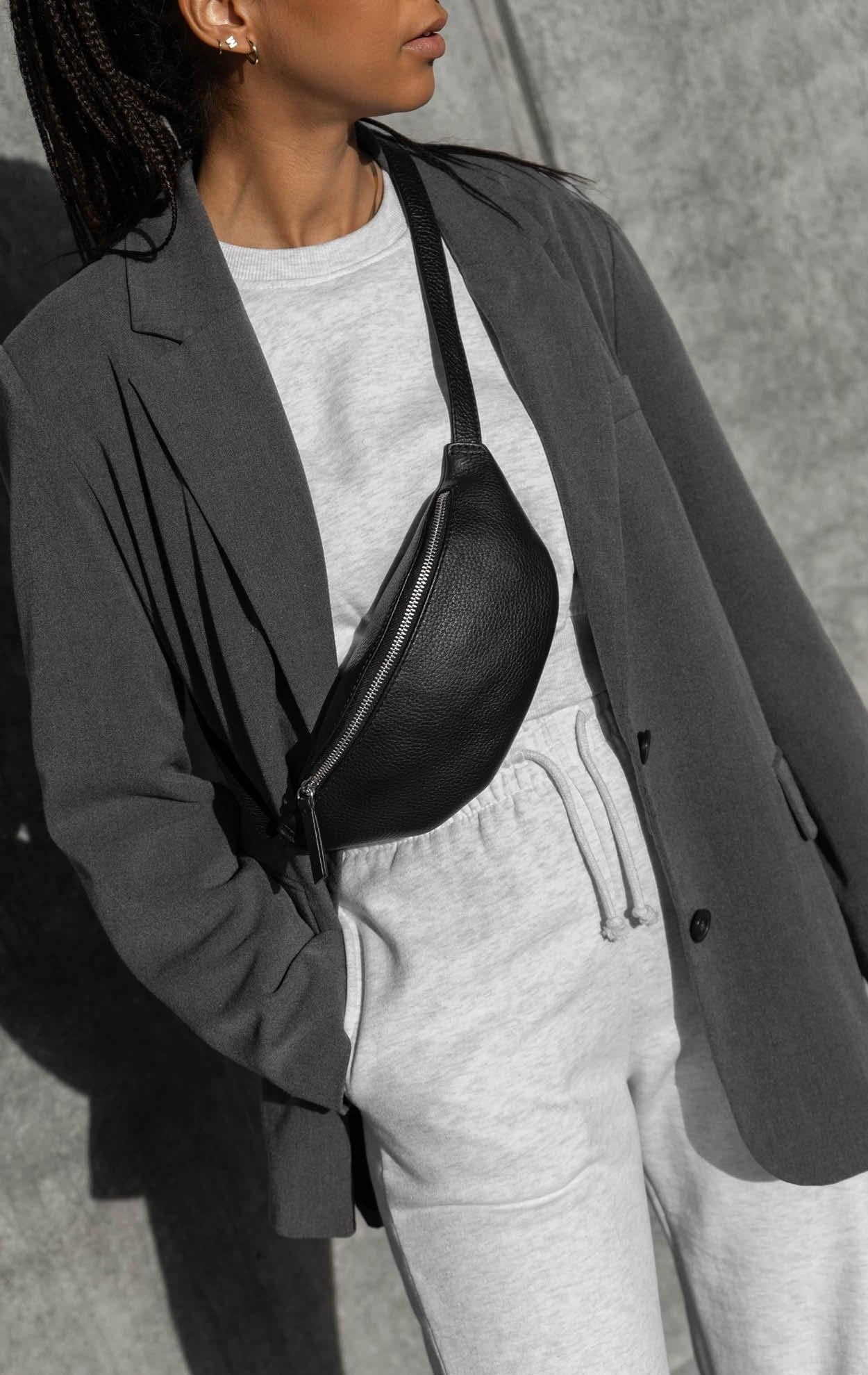 Belt bag Pixie Bum Bag for him and her. Black leather skin. Markberg