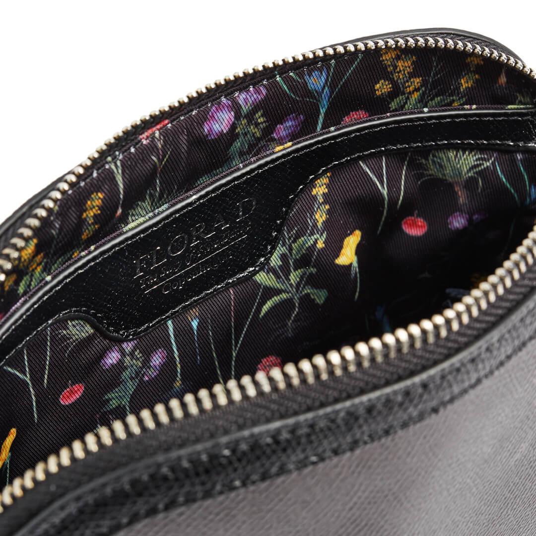Small toiletry bag in black canvas. The lining of the bag is adorned with the most beautiful floral print of selected motifs from Flora Danica. The toiletry bag has two compartments and closes with a zip. The bag is the perfect accessory for traveling or to take with you on the go.