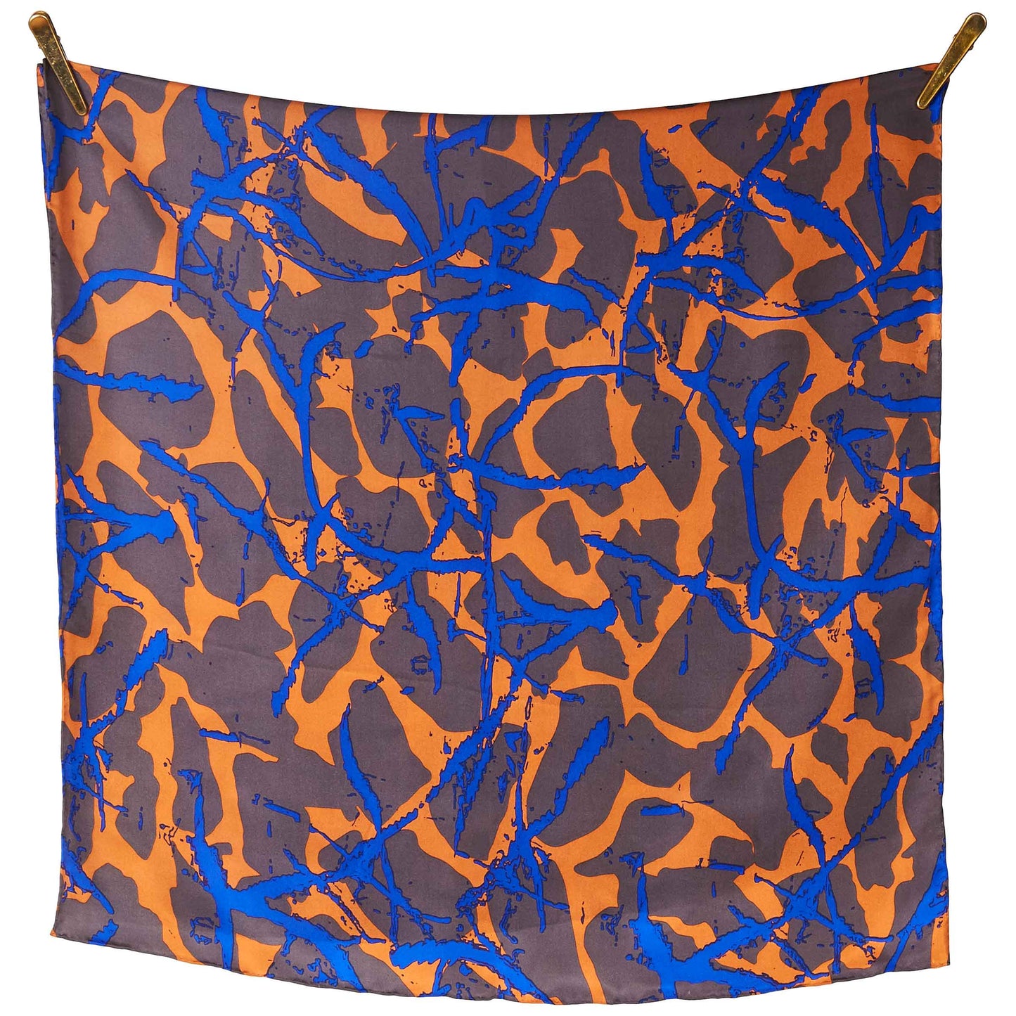 Dots and Lines silk scarf for women. 100% silk. Copper and blue. Bella Ballou