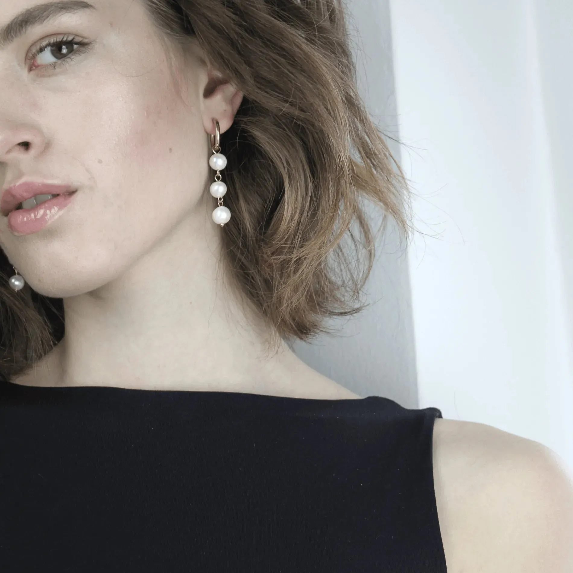 Joy lange perlekæde øreringe er stilfulde og elegante. De er fremstillet med ægte ferskvandsperler. Giv dit look en yndefuld og glamourøs finish.