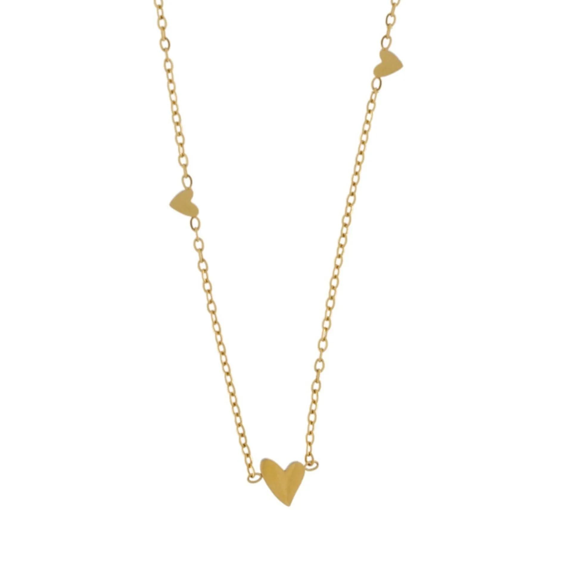 Love Vandfast 3 Mini Heart halskæde tilføjer et forførende delikat touch til ethvert look. Dens minimalistiske design og 18K guldbelagt gør den perfekt alene eller til at lægge i lag med dine andre yndlings halskæder.