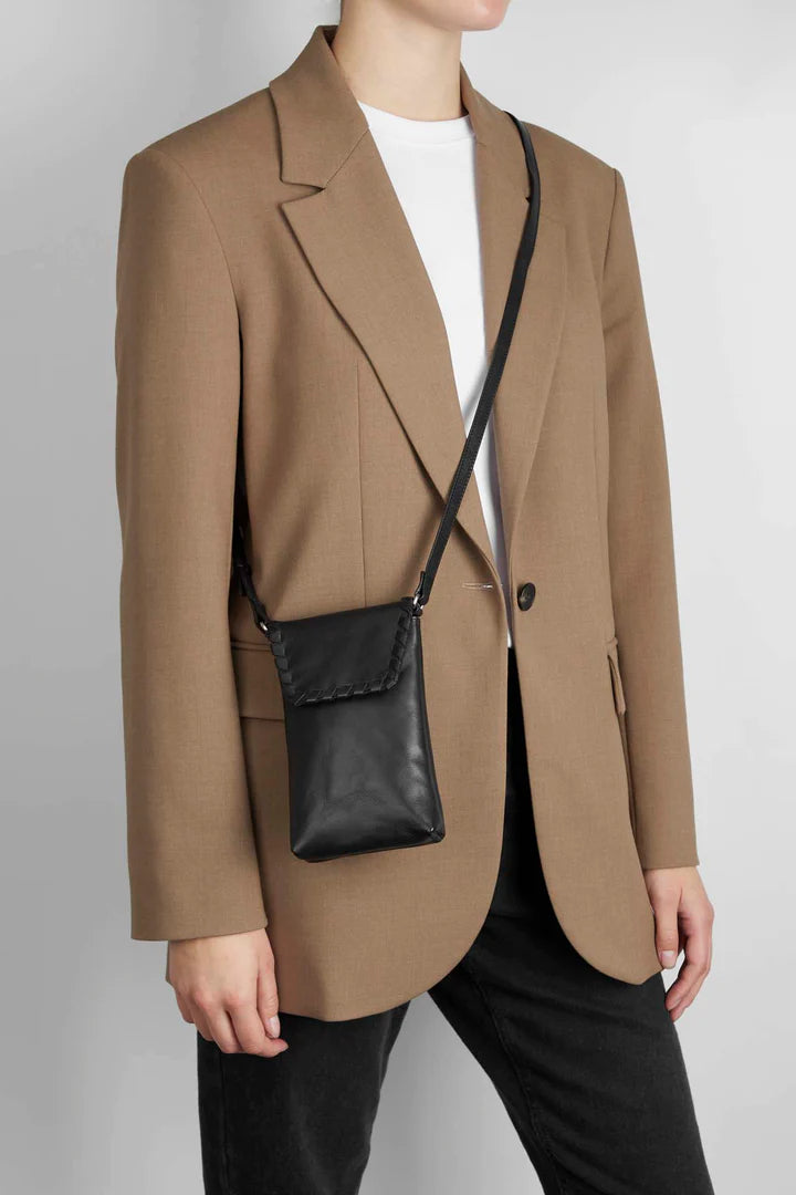 LuccaMBG mobile bag with strap. Whipstitch model. Black. Leather. Markberg