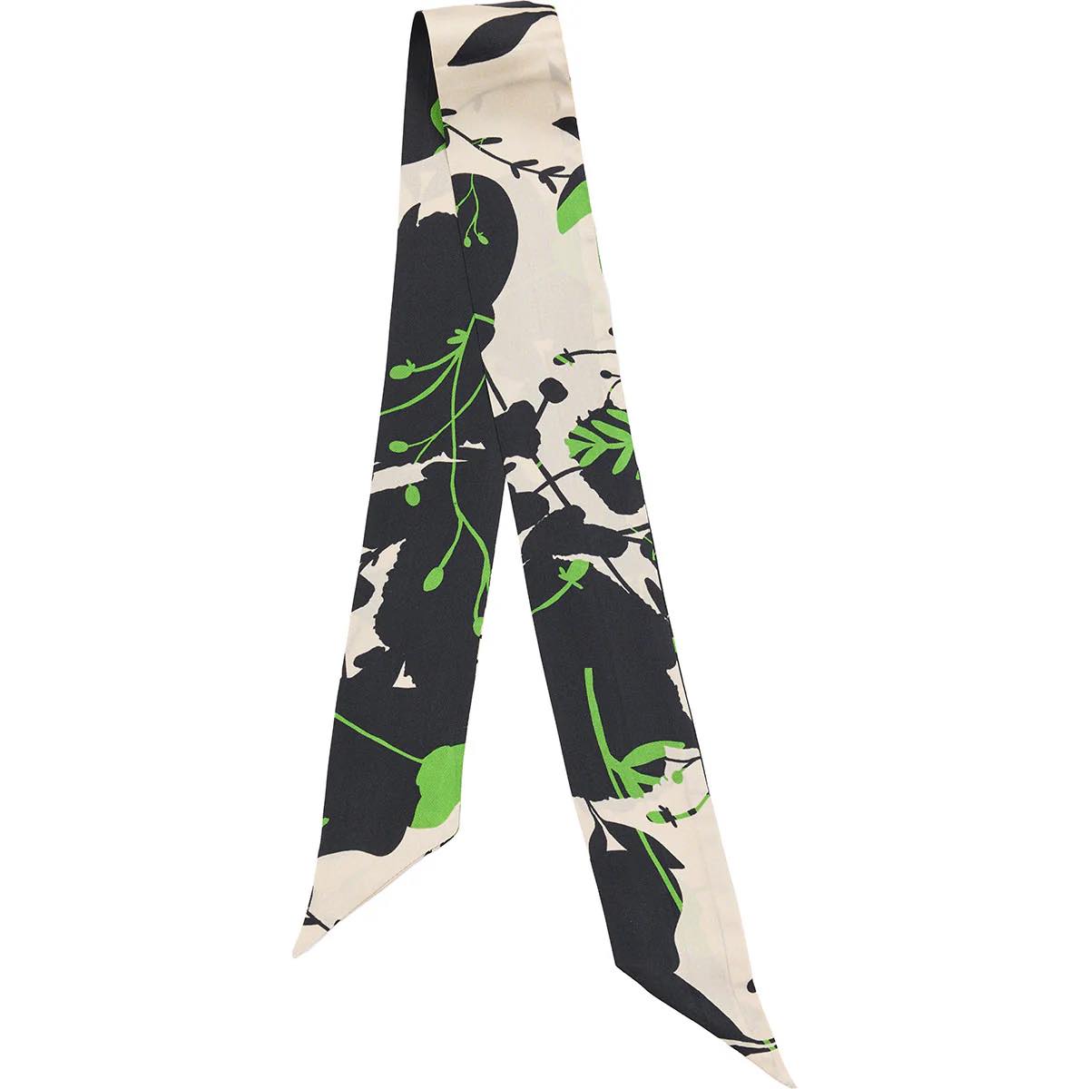 Monochrome Twilly narrow scarf. 100% silk. Cream, black, green. Bella Ballou