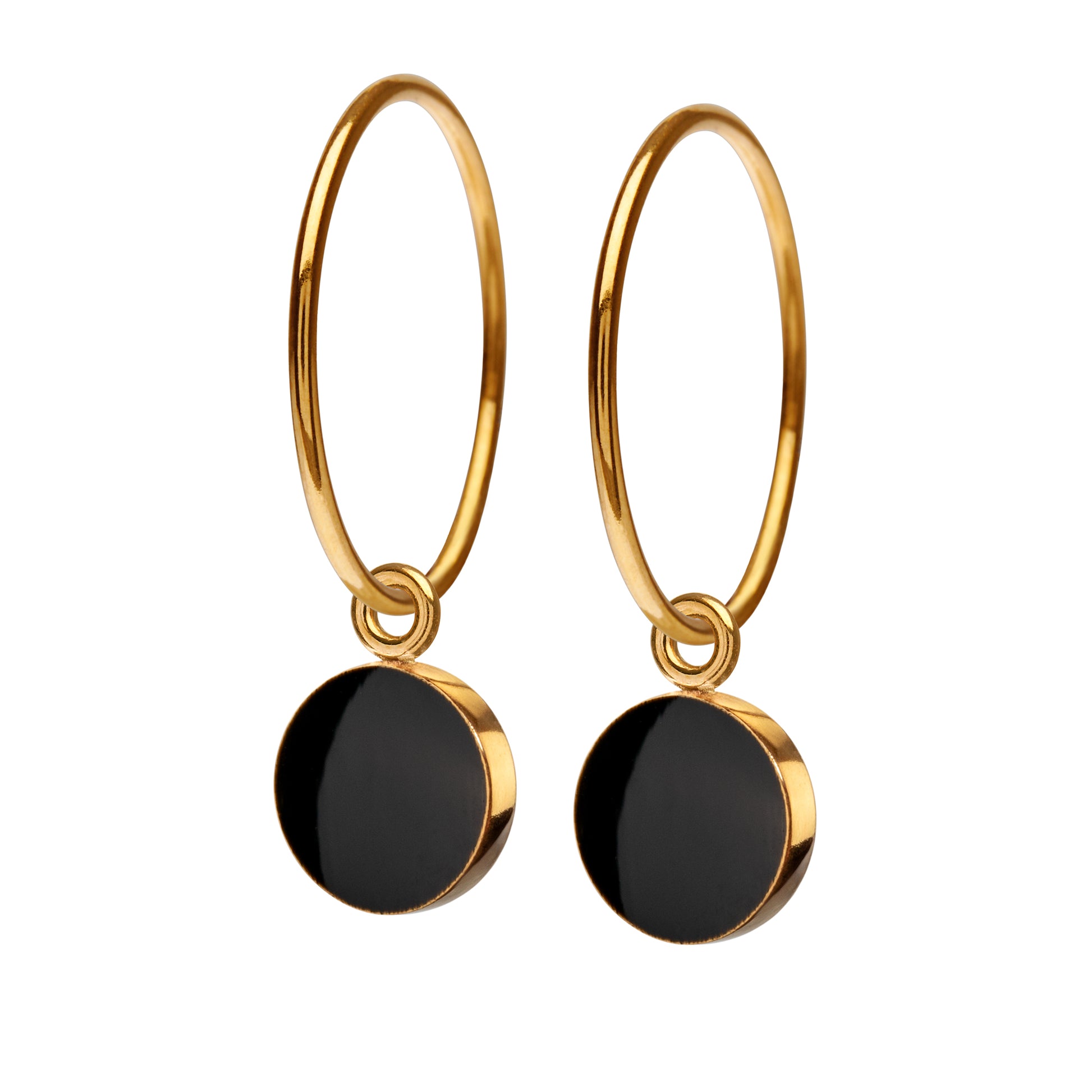 Fine Sign creole earrings with enamel lacquer in deep black. Stylish, simple and eye-catching.